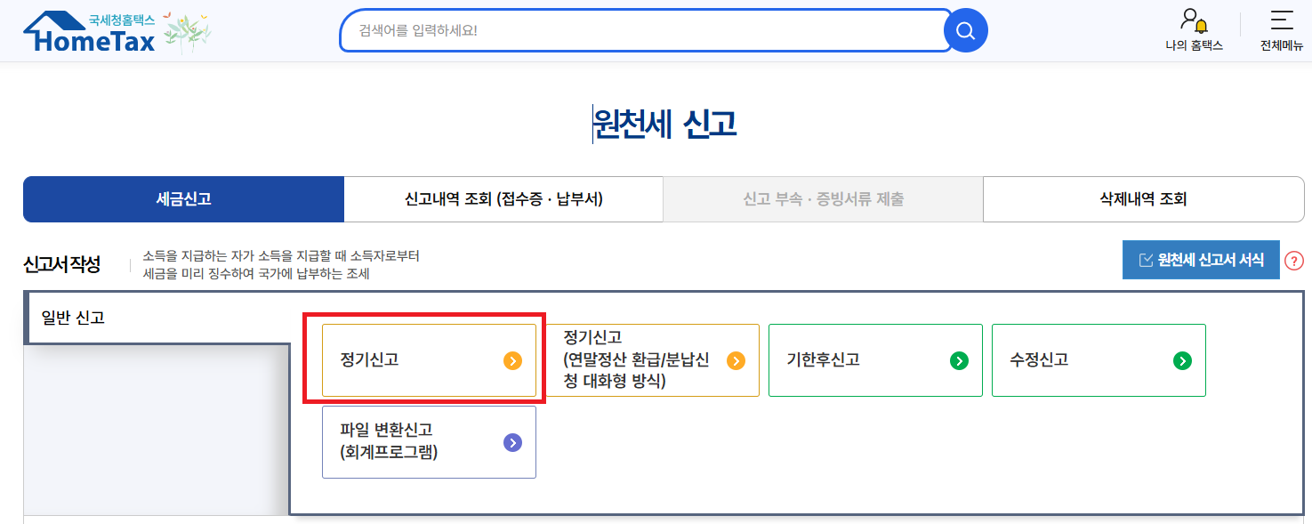 | 반기 납부 | 정기신고 | 소득 지급일이 속하는 반기의 다음달 10일까지 |