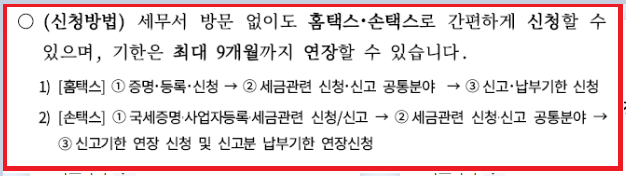 → 신고기한 연장 신청 및 신고분 납부기한 연장신청