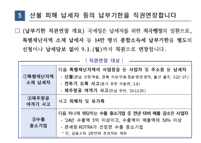 이는 납세자의 피해 회복과 정상적인 경제활동 복귀를 지원하기 위한 세정당국의 배려 조치입니다.
