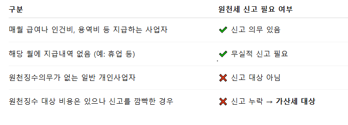 ● 간이과세자 중 직원·프리랜서 없이 단독 운영 중이라면 원천세 의무 자체가 없는 경우도 있음