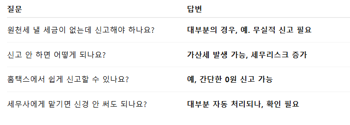 🔸 납부할 세금이 없더라도 ‘신고’는 해야 할 수 있습니다.