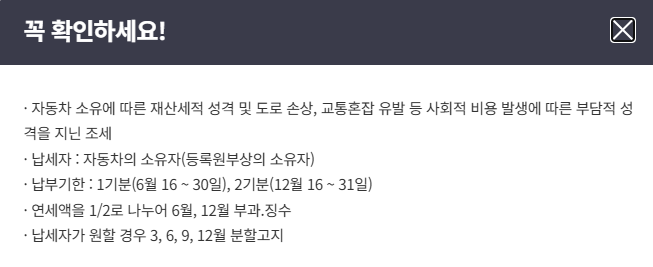 등록만 되어 있어도, 실제 운행 여부와 관계없이 부과됨