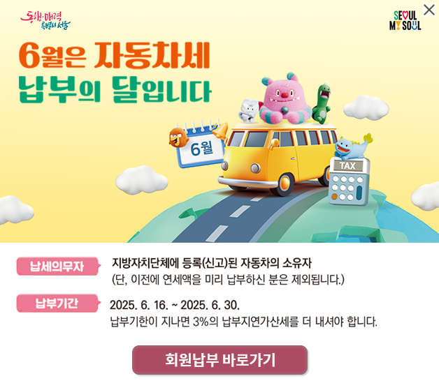 서울시 외 거주자는 위택스에서 신청 및 납부할 수 있습니다.