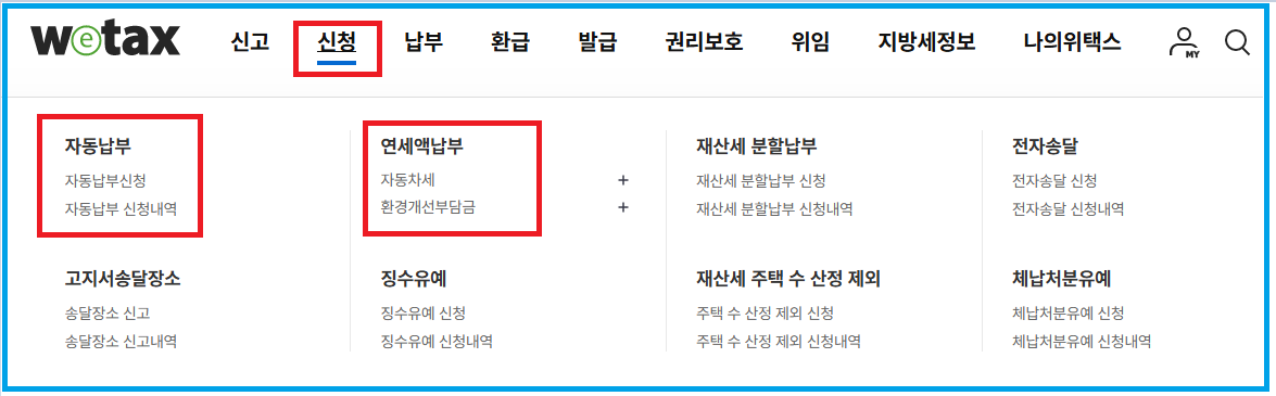 자동차세 연납신청은 위택스와 이택스에서 할 수 있습니다.